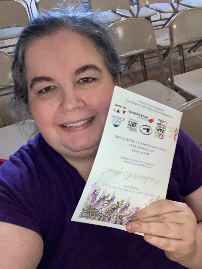The seats are pretty hard but they have cushions you can rent for only $1. Enchanted April plays at Pioneer Hall in West Jordan until May 18th and you can purchase tickets here.