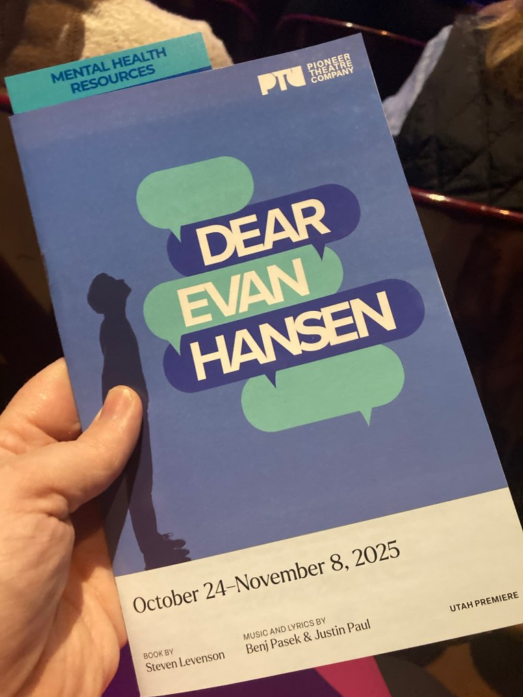 I bring all of this up because the new production of Dear Evan Hansen at Pioneer Theatre Company is a good example of a show that screams the 2010s but still has much to offer an audience-member in 2025. It’s the first Utah-based production of this Tony Award winning musical and they have done an excellent job bringing out the best of this material while minimizing the elements that may have not aged as well.