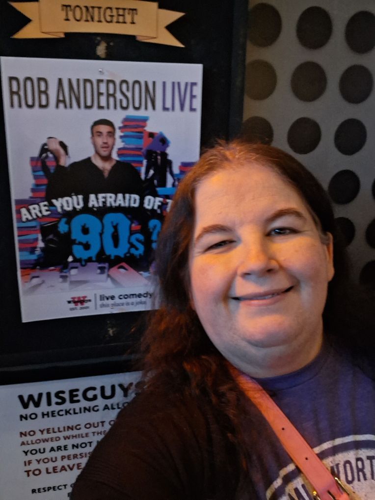While I have been to comic stand up performances before I have never been a comedy club outside of improv clubs in college. I’d heard a lot about Wiseguys but never been to a performance there until I had the chance to see tiktok star Rob Anderson there. In many ways this was a perfect performance for me to start with because it really is more of a one man play than a traditional stand up routine. In a continuation of his tiktok persona Anderson goes through television and movies of the 90s making pithy remarks and pointing out how ridiculous we all were, which of course is very true.