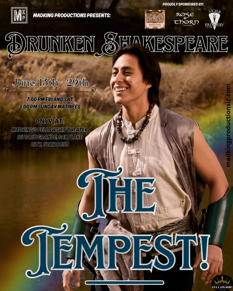 When I first started my journey into supporting local theatre I wanted to be open to new experiences and types of theatre. This has served me quite well over the years and I’m still finding ways to experience the stage in fresh and inventive new to me formats. I’d heard of Drunken Shakespeare before but as I don’t drink myself I hadn’t given it much thought. Then the good folks at Mad King invited me to see their drunk production of The Tempest and since they had a Sunday matinee I decided to give it a shot (from church to Drunken Shakespeare is an unusual combination but I am a unique person!) While this experience won’t be for everyone I had a great time and would encourage anyone looking for something fresh and original to give it a shot.