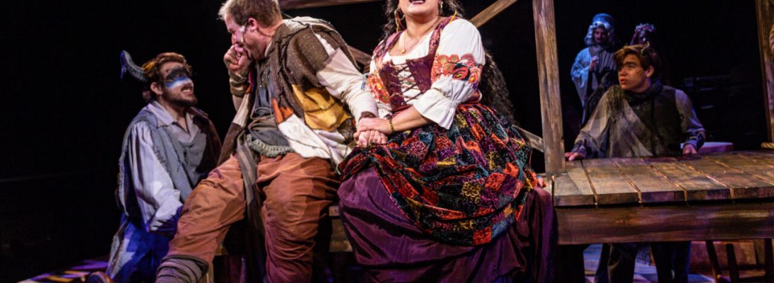 As much as I enjoyed the rockstar element of Hecate at USF I feel I got to know the Macbeths a little better in the Parker production. They felt like a bit of an afterthought at USF. I also think Lucas Charon is perfectly cast in the lead role. Everything about his appearance, energy and performance is just what I envision for the character of Macbeth. We also get the sense of grieving and loss from McKenna Walwyn’s performance as Lady Macbeth. The sound (Spencer Hohl), lighting (James B Parker) and other elements are always a standout at Parker and this is no exception. Others have written more about the adaptation and it not being to their liking. I saw no major problems with the script. The production is directed by Brinton Wilkins and it plays through August 30th. Tickets can be purchased here. (Also I’ll be sad to have no Shakespeare next year at Parker 😦