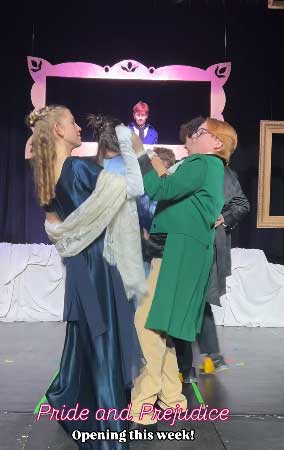 There are a lot of very impressive aspects of what American Heritage is doing with this play. First of all it is long and full of old-English language that might be challenging for teens. Most of the time teens do shorten versions of musicals and plays like Hadestown and Harry Potter and the Cursed Child both with teen editions. With this version of Pride and Prejudice, however, the teens do the full story which is no easy a task.